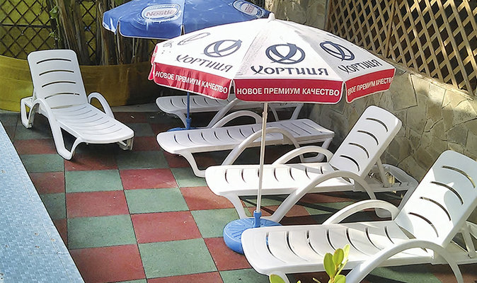 Бар — у бассейна, соки, воды, пиво и другие штучные продукты, работает с 08:00 до 22:00 перерыв с 14:00 до 17:00