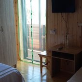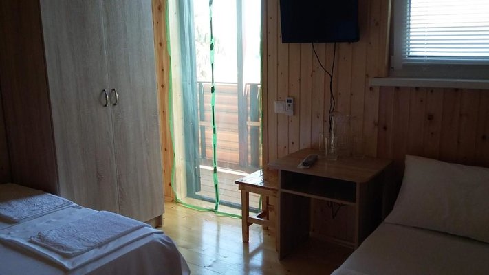 Интерьер выполнен в эко-стиле и светлых тонах. Во всех номерах есть необходимая мебель и техника. Санузел укомплектован стандартным набором сантехники с гигиеническими принадлежностями. С балкона открываются виды на море и сад.