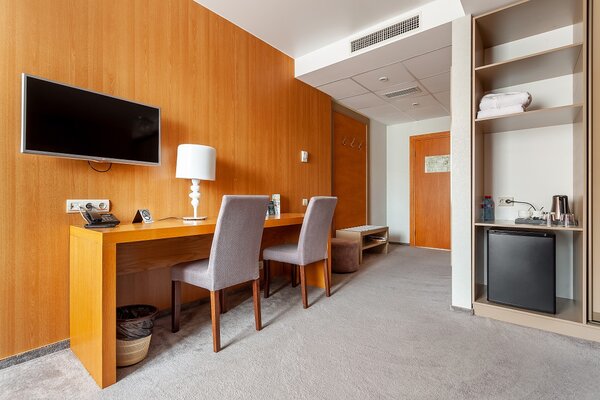 Для проведения деловых мероприятий и конференций отель располагает оборудованным конференц-залом, способным вместить до 40 участников.