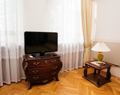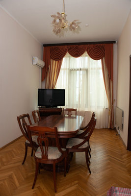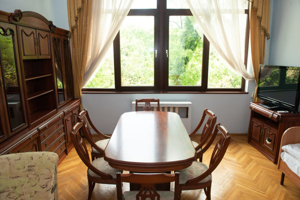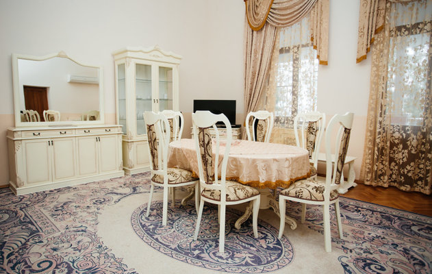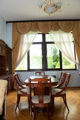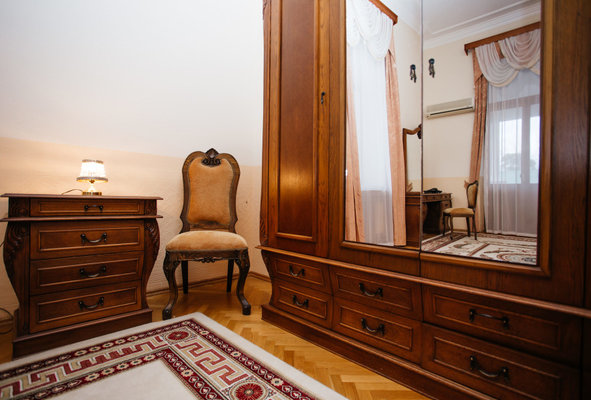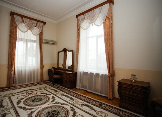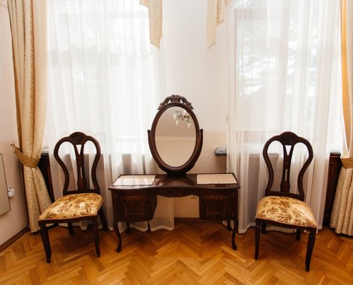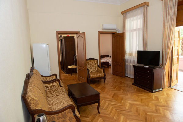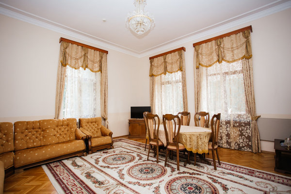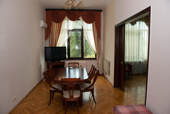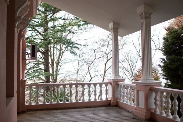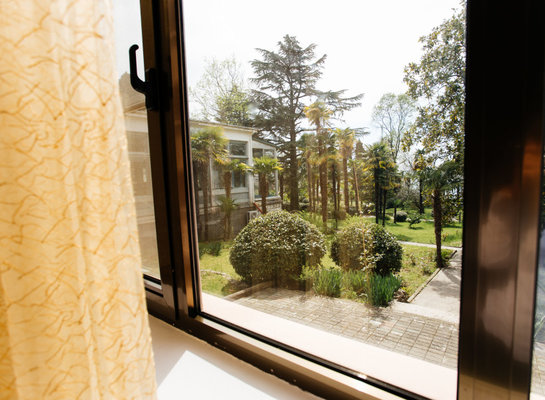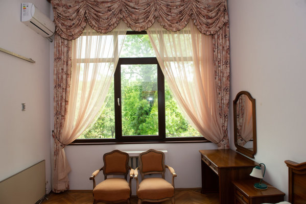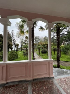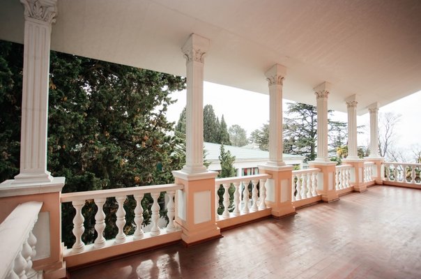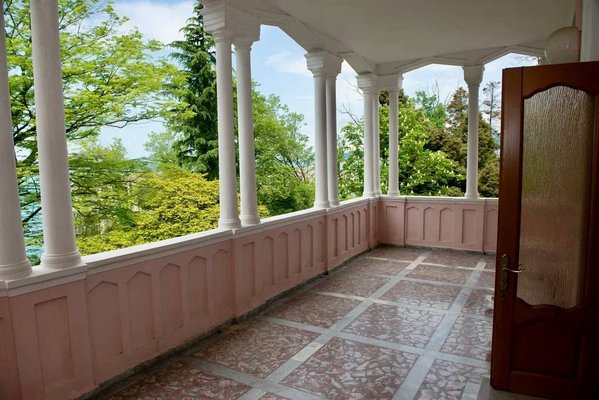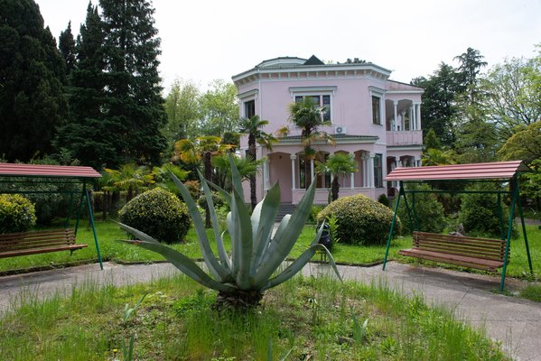 В роскошном парке гармонично сочетаются две виллы в стиле сталинского империализма: высокие потолки, утонченная лепнина, шикарная классическая обстановка, широкие лестницы и просторные террасы с плетеной мебелью. Отсюда открывается великолепный вид на неповторимые закаты, рассветы и парк, где можно увидеть птиц и понаблюдать за любопытными белками.