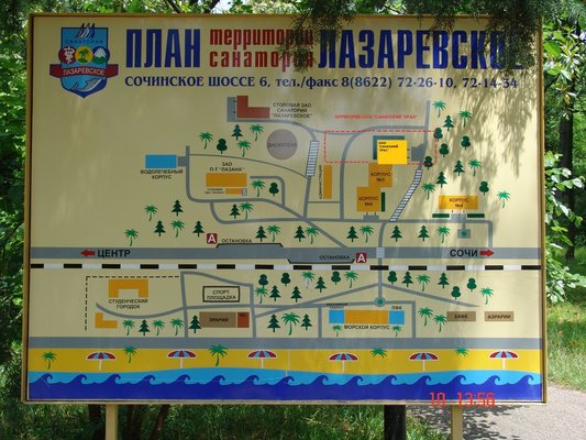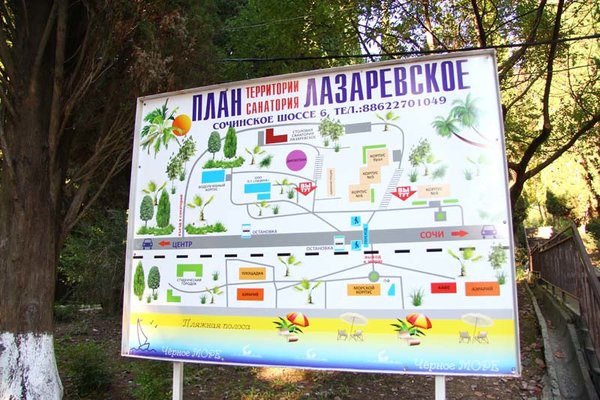 На окраине поселка Лазаревское, в красивом, природном парке, находится санаторий носящий такое же красивое имя – «Лазаревское», принимающий уже не одно десятилетие всех желающих на отдых и лечение, в течении внушительного диапазона дат, с апреля до самого конца ноября. Инфраструктура этого, уже легендарного, санатория может порадовать гостей живописным парком, широким пляжем, обширным фондом номеров различных категорий, столовой, лечебной базой, кафе с разнообразным меню, дискотекой,отлично оборудованным городком для самых маленьких отдыхающих и торговыми павильонами – все это создано и работает для удобства, комфорта и отдыха всех гостей.