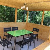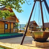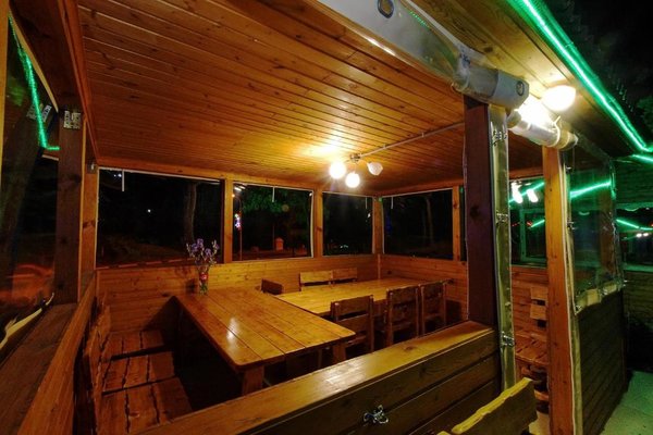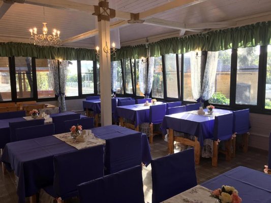 На территории работает ресторан. Рядом продуктовые магазины, можно также воспользоваться принадлежностями для барбекю.