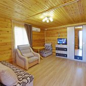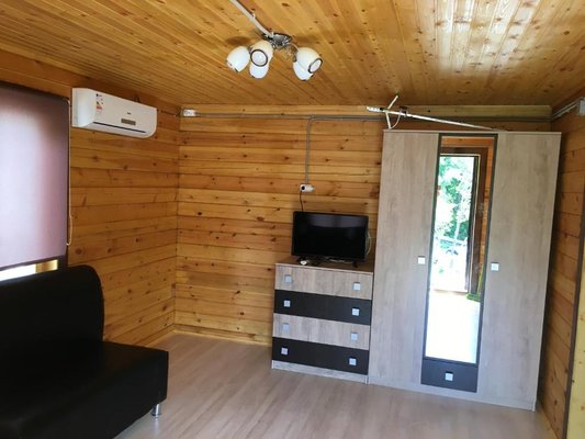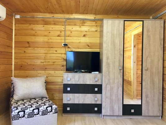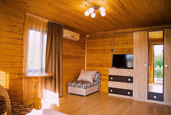 Дизайн интерьера оформлен в едином лаконичном стиле, сделан современный ремонт. В просторных комнатах созданы все необходимые условия для полноценного размещения и проживания. В распоряжении отдыхающих будет: телевизор с плоским экраном, кондиционер, шкаф для одежды, прикроватные тумбочки, собственная ванная.