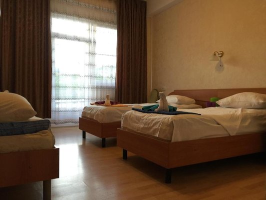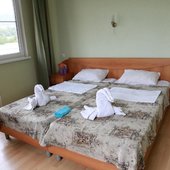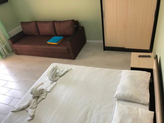 Номера оформлены в стиле минимализма и выходят на балкон. В распоряжении гостей телевизор, а в собственной ванной комнате установлен душ.