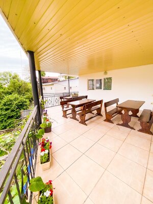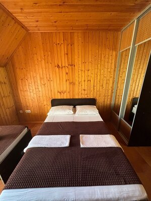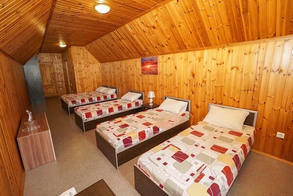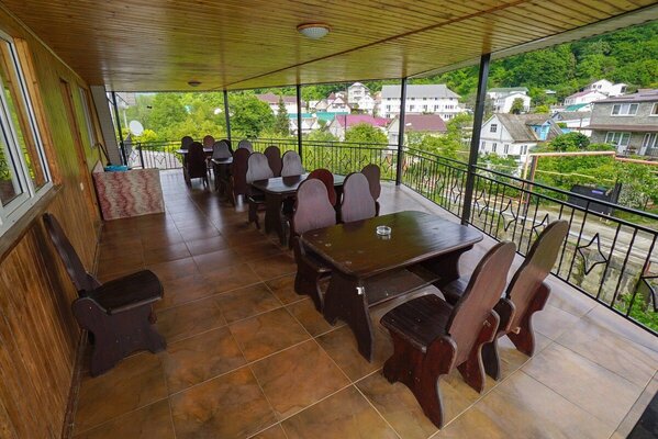 Для удобства отдыхающих на втором этаже оборудована общая кухня. Просторные веранды на втором и третьем этажах идеально подходят для отдыха и любования видами. Во дворе обустроена уютная мангальная зона. Среди прочих услуг для гостей: безлимитный Wi-Fi, прачечная и комната для хранения багажа.