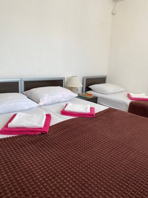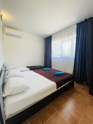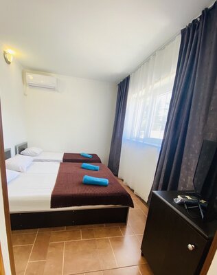 Наш четырехэтажный гостевой дом с мансардой расположен всего в 450 метрах от моря. Мы предлагаем номера различной категории комфортности и вместимости, чтобы каждый гость мог выбрать оптимальный вариант. Все номера оборудованы кондиционером, телевизором и мини-холодильником. В то время как номера эконом-класса предусматривают общие удобства на этаже, большинство комнат оснащены индивидуальной ванной комнатой.