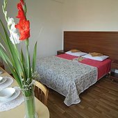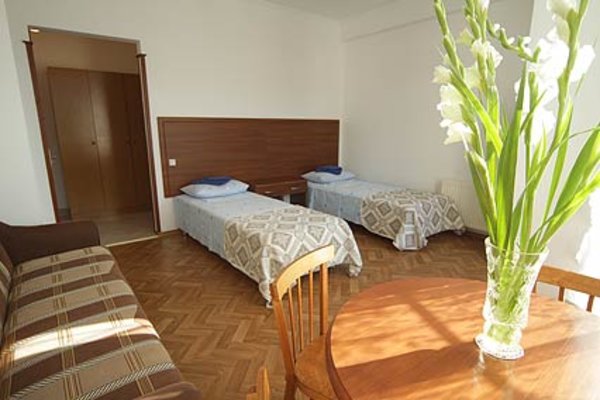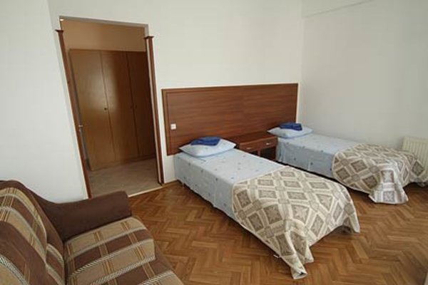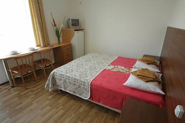 Трехэтажное здание отеля с мансардой расположено на компактной ухоженной территории с зелеными насаждениями и уютными зонами отдыха. Комфортабельные номера категории «стандарт» с разным количеством комнат прекрасно меблированы и обеспечены необходимыми бытовыми приборами.