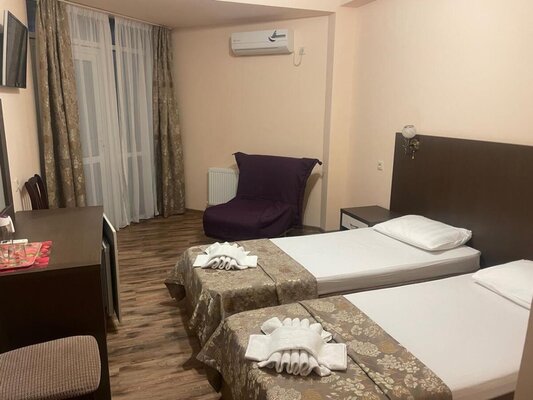 Мы предлагаем номера различных категорий (от стандарта до люкса) для 2-4 человек, идеально подходящие для семейного отдыха или романтического уикенда. К вашим услугам: бесплатный Wi-Fi, открытый бассейн, детская игровая комната, круглосуточная стойка регистрации.