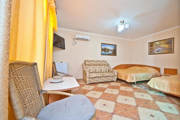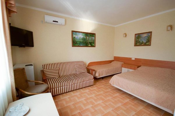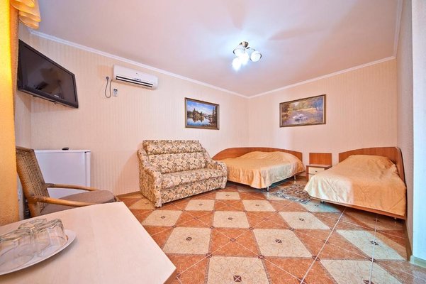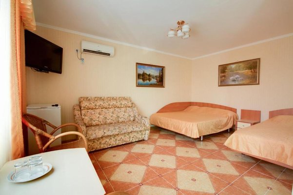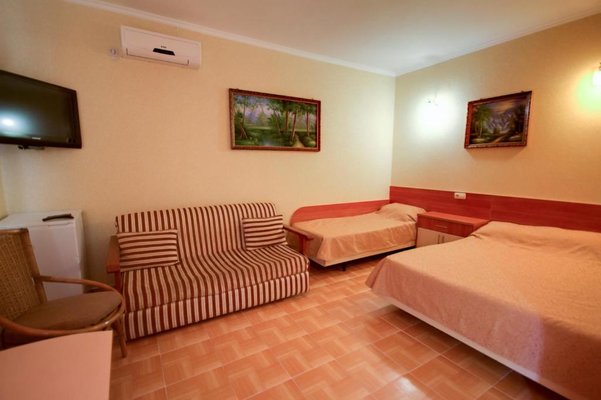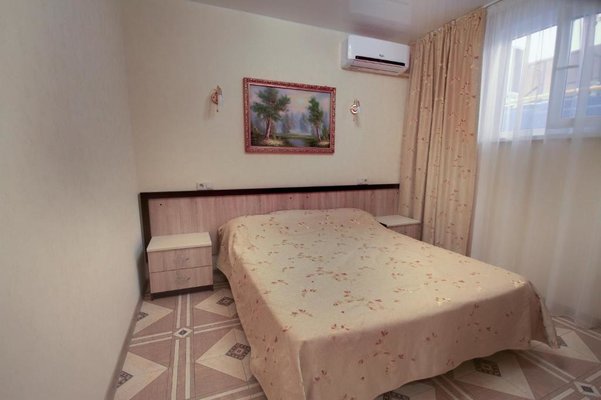 Самолетом до аэропорта г. Анапа, далее на рейсовом автобусе №127 до остановки «Аквапарк», далее пройти пешком 680 м до гостиницы.