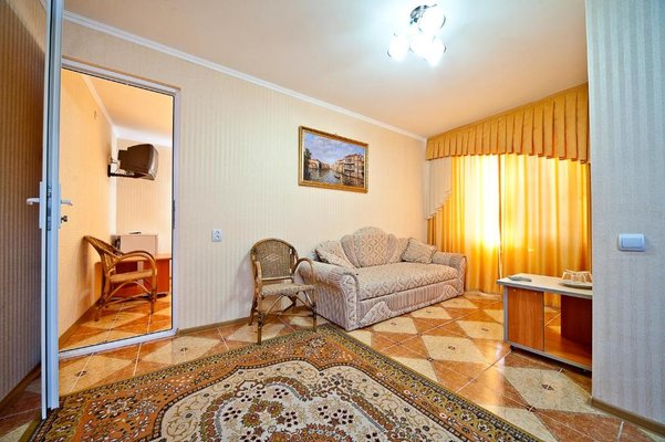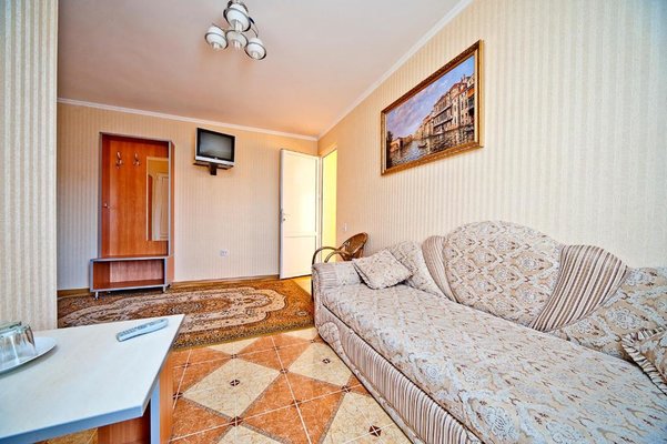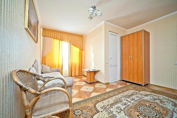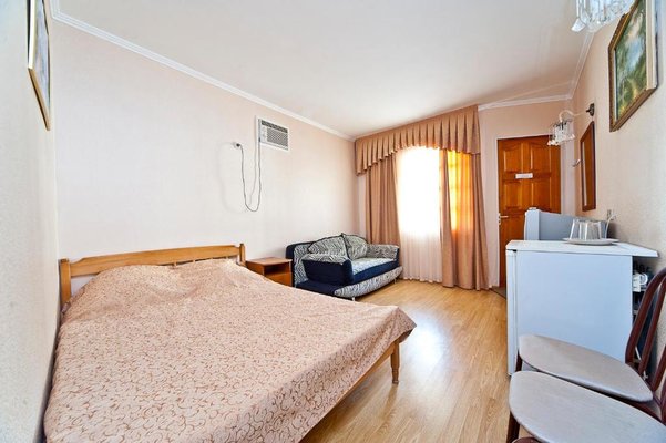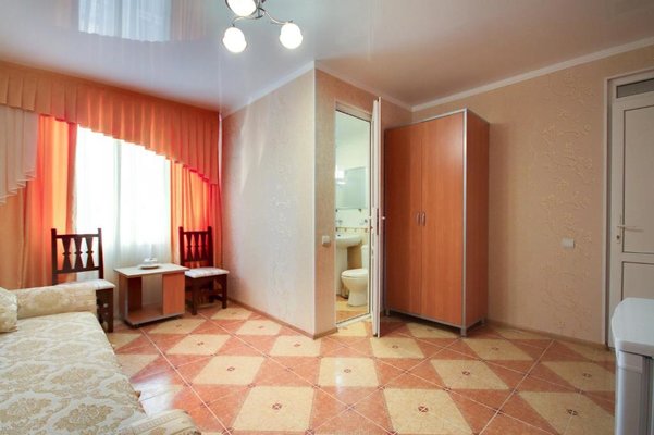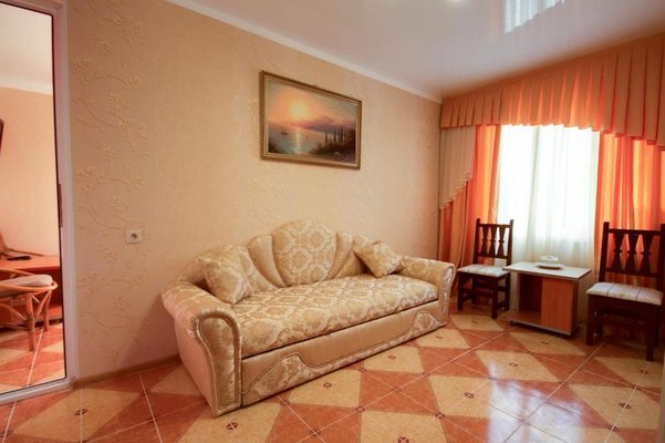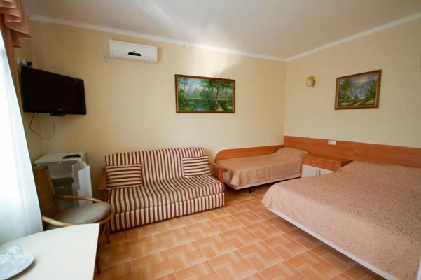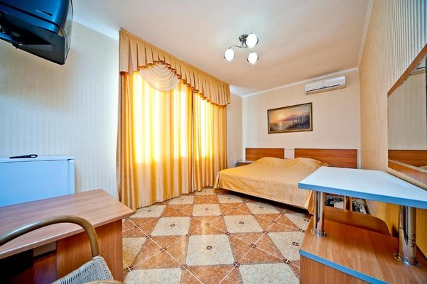 Отель, состоящий из трехэтажного корпуса, расположен на главной улице города — Пионерском проспекте. В гостинице представлены разнообразные номера для размещения: двух-, трех- и четырехместные, оформленные в нейтральных тонах. В каждом номере есть отдельная ванная комната с душем, кондиционер, телевизор, электрический чайник, а также предоставляется беспроводной доступ в интернет.