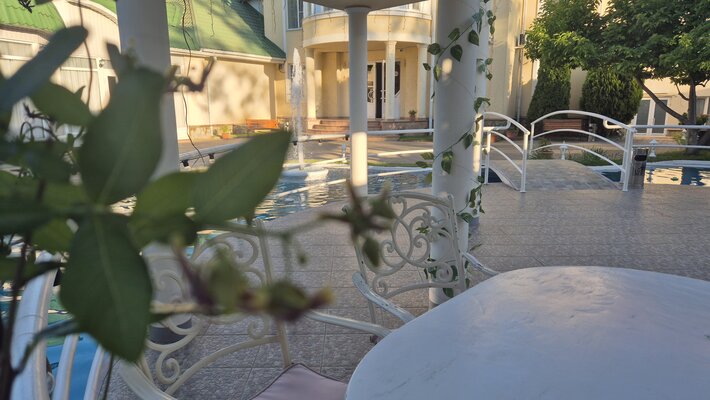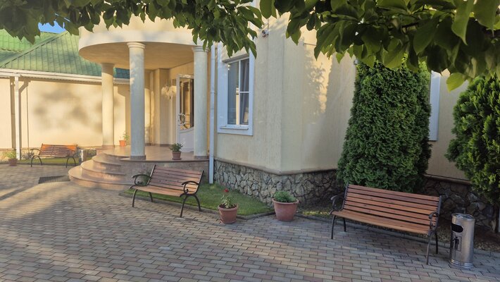 Здесь вы найдете спокойствие и уют, сможете расслабиться в теплом бассейне и финской сауне. На территории комплекса расположен очаровательный дворик с прудом, беседкой и фонтаном — прекрасное место для отдыха или выездной свадебной регистрации. Насладитесь блюдами в ресторане или кафе.
