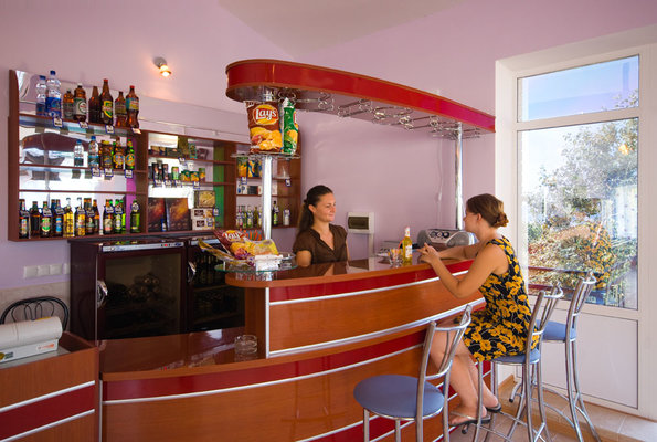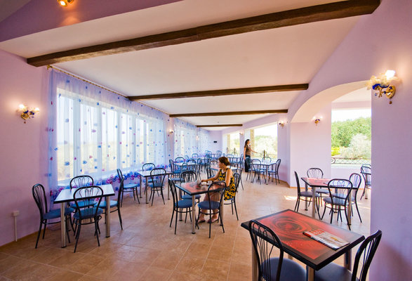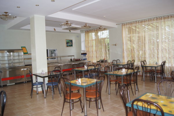 Питание гостей организовано три раза в день. В пансионате работает летнее кафе, бар, а также зона с мангалом.