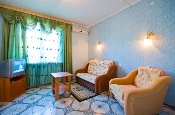 Жилой фонд пансионата располагается в двух- и трехэтажных этажных зданиях, расположенных среди высоких деревьев. Каждый из номеров обеспечен санузлом с душем и отлично меблирован. В числе бытовых приборов в номерах: кондиционер (вентилятор в номерах «эконом»), холодильник, телевизор, электрочайник, другие удобства. Доступ в Wi-Fi есть на территории.
