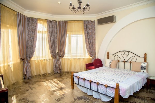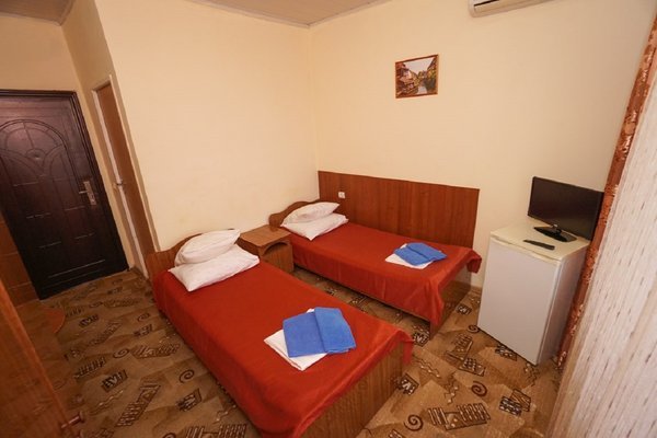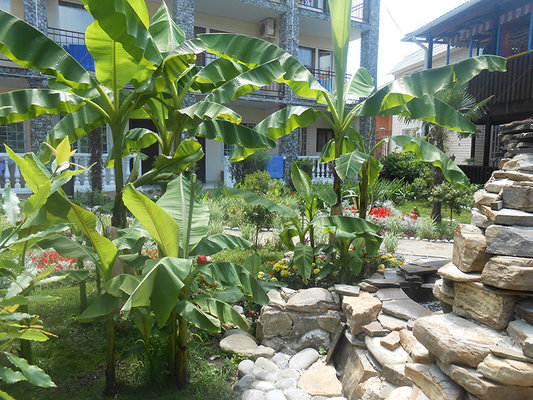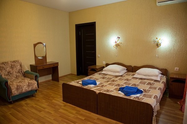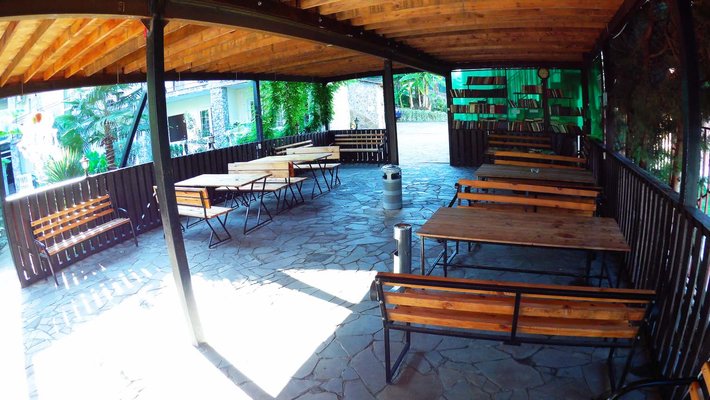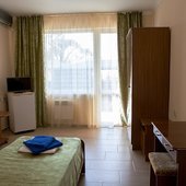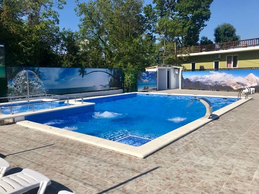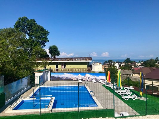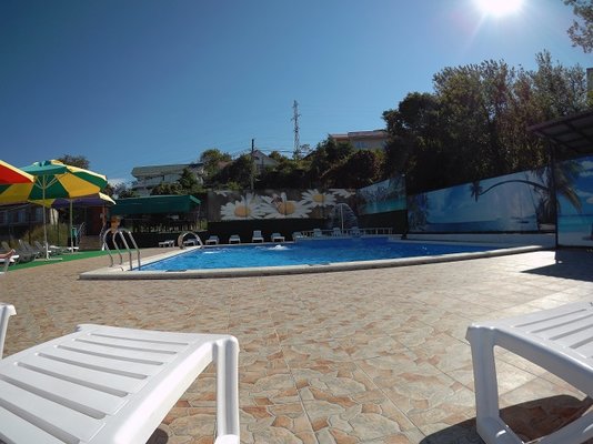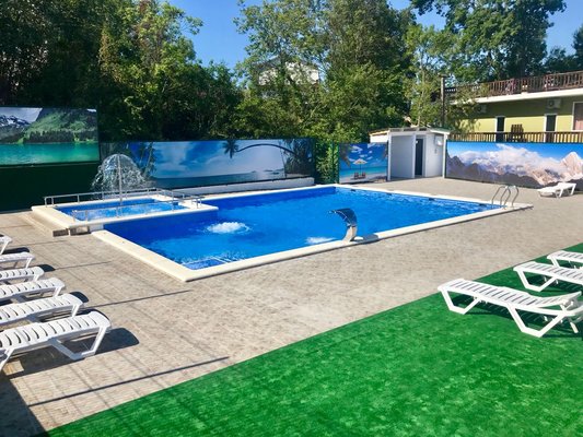 На территории комплекса есть открытый подогреваемый бассейн, размером 9*12 м. с детским отделением. Пользование бассейном входит в стоимость проживания.