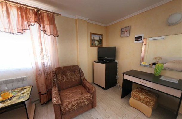 Номерной фонд составляют комфортабельные двухместные номера с видом на море, меблировкой, холодильником, телевизором и кондиционером. В помещениях гостевого дома действует безлимитный и высокоскоростной WI-FI.