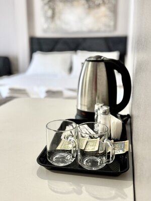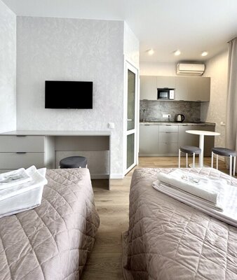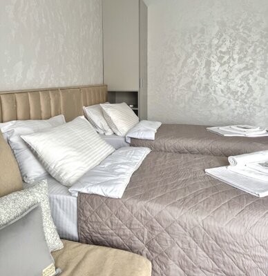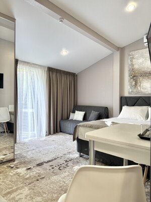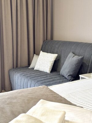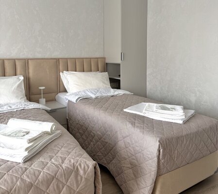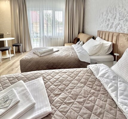 Наши комфортабельные номера идеально подходят для семейного отдыха. До пляжа всего 10 минут приятной прогулки по ровной дороге — удобно и безопасно для всех.