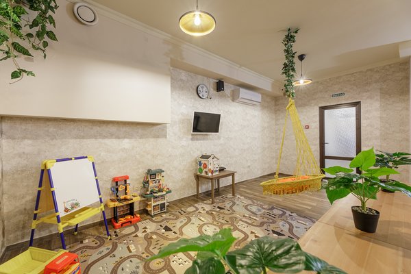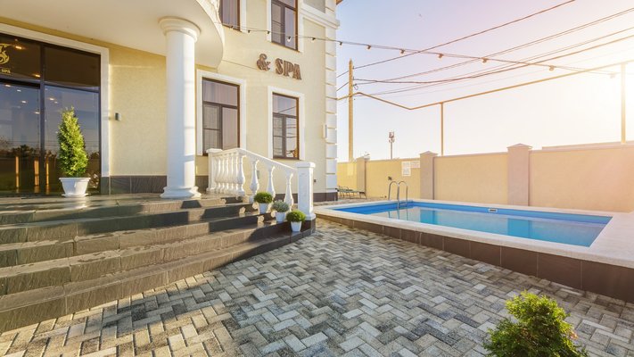 На территории есть бассейн, финская сауна, SPA-зона, соляная комната для оздоровления, детская игровая комната и очаровательное кафе, в котором можно вкусно поесть.