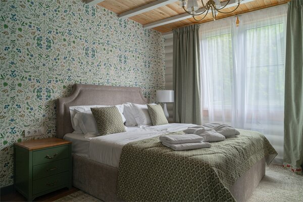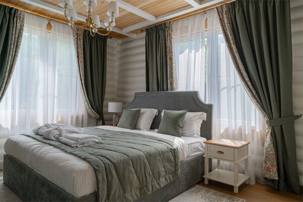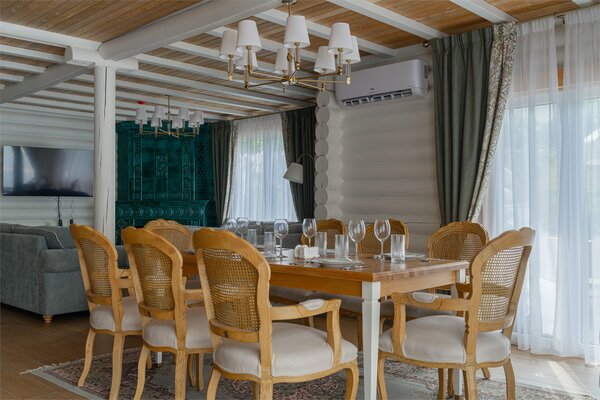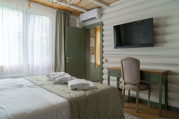 На территории комплекса для вашего досуга предусмотрены: просторная баня с купелью и сауна, идеальные для компаний, всесезонная беседка с мангалом, уютная зона отдыха с настоящим дровяным очагом. К вашим услугам также бесплатный Wi-Fi на всей территории, прачечная, массажный кабинет и приватная парковка. Особо стоит отметить сервис персонального Батлера, который будет к вашим услугам на протяжении всего отдыха.