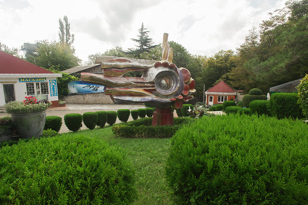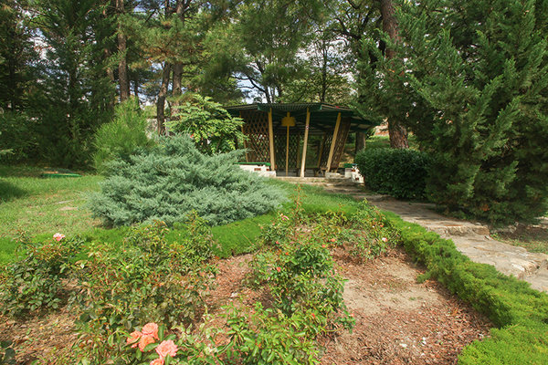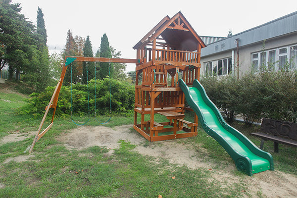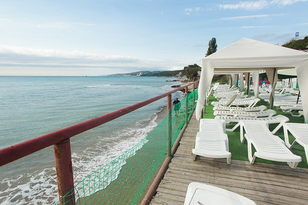 Пансионат с лечением «Восток» подарит вам не только запах трав и щебет птиц, но и отменное здоровье, он расположен в красочном лесистом склоне, домики и коттедж где созданы все условия буквально утопают в зелени, сочетание широколиственных, можжевеловых и других хвойных деревьев создают здесь уникальный микроклимат, территория обширная и ухоженная на расстоянии около 500 метров от моря, песчаный пляж и дорога к нему идет под навесом из вековых деревьев и проходит через подземный переход, все оборудовано душевыми, туалетами и раздевалками, благоустроено и оборудовано аэрариями.