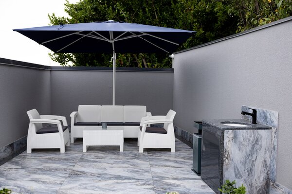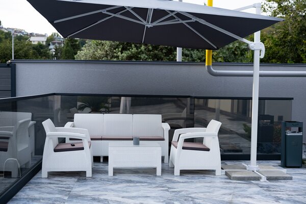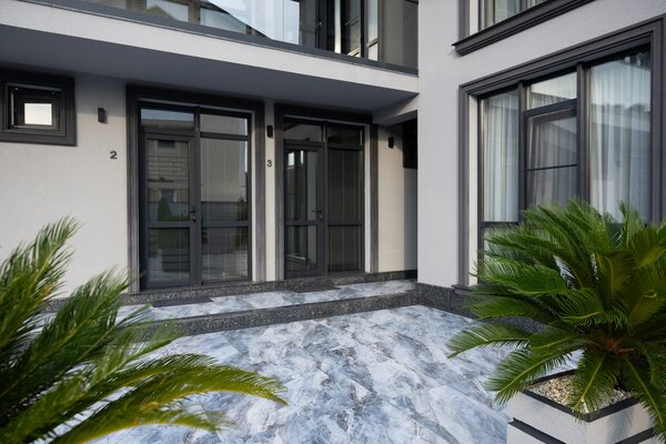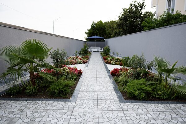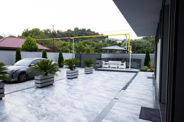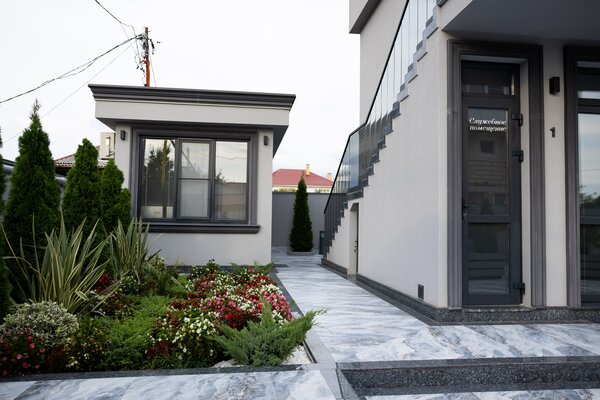 На территории гостевого дома предусмотрены собственная прачечная, две зоны отдыха (включая площадку для барбекю), парковка и живописный мини-сад с плодовыми и вечнозелёными растениями. Автономная котельная обеспечивает бесперебойное тепло- и водоснабжение.