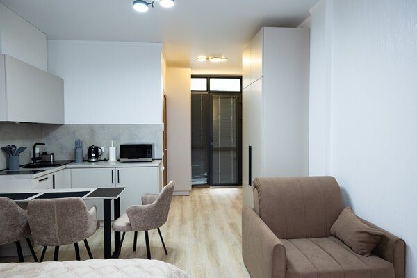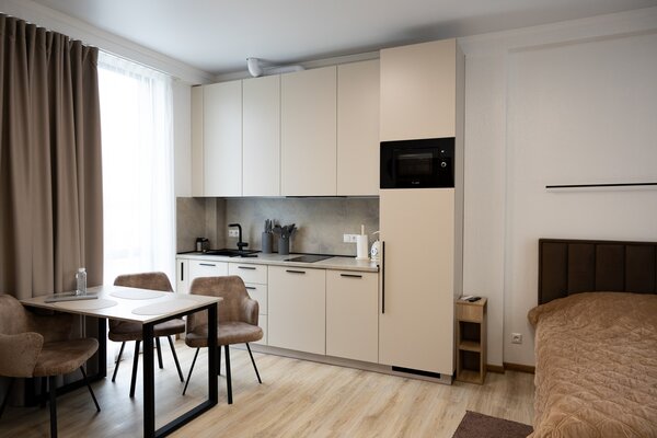 К услугам гостей 10 номеров повышенной комфортности площадью 23-25 м², каждый из которых вмещает до 3-х человек. Все номера имеют отдельный вход, отличную шумоизоляцию, современную функциональную мебель, собственный санузел, оборудованную кухонную зону, а также системы отопления и кондиционирования.