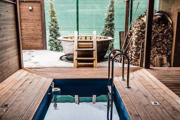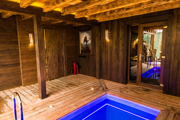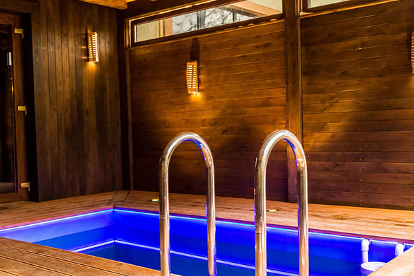 В банном комплексе уютно расположилась купель, где каждый гость может насладиться освежающим погружением после жаркого пара. Это идеальное место для восстановления сил и расслабления, где вода нежно обнимает, даря умиротворение и спокойствие.
