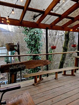 Глэмпинг приглашает вас насладиться отдыхом в собственной палатке или автодоме на берегу живописной реки, в окружении величественных гор. Вы сможете искупаться, воспользоваться общей кухней, рестораном, костровой зоной с мангалом и барбекю, а также душем и туалетом.