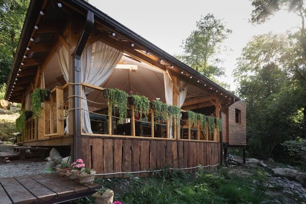 Глэмпинг предлагает не только комфортное размещение, но и разнообразные возможности для отдыха: ресторан с авторской кухней, утренний ароматный кофе и чай, экскурсии к местным достопримечательностям (чайные плантации, водопады, дольмены), пешие прогулки, рыбалку. Расслабьтесь в русской бане или купели, насладитесь вечерними посиделками у мангала под звездами, займитесь йогой на террасе. Начните день с зарядки и дыхательных практик, завершив их купанием в горной реке.