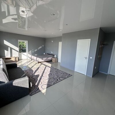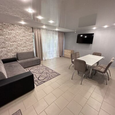 К размещению предлагается уютный 2-этажный дом. На первом этаже находятся входная зона, столовая, просторная гостиная с большим обеденным столом, зоной отдыха с диваном и телевизором, а также полностью оборудованная кухня и гостевая комната с двуспальной кроватью. Для релаксации предусмотрена зона отдыха с сауной, туалетом и душевой кабиной. Второй этаж включает две спальни с отдельными двуспальными кроватями и дополнительную гостевую комнату с телевизором. Также имеется выход на просторный балкон и отдельные ванные комнаты.