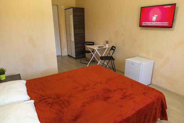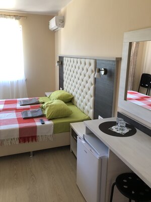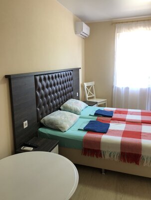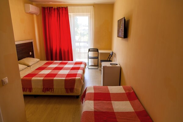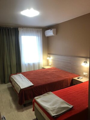 Просторные однокомнатные номера с собственным санузлом, удобной мебелью, кондиционером, феном и мини-холодильником. Из окон открываются живописные виды на реку, лес или горы.