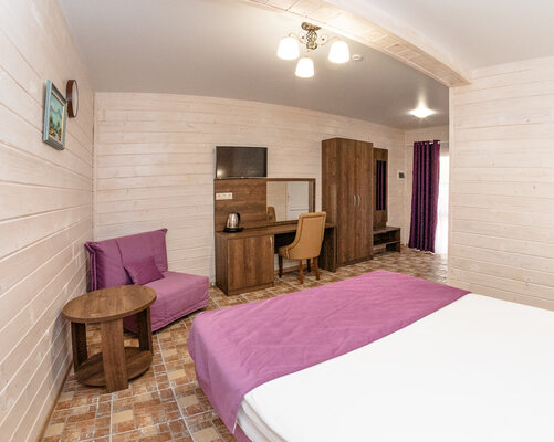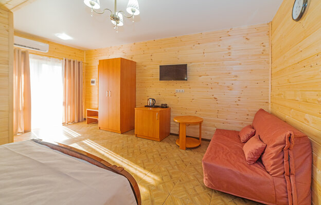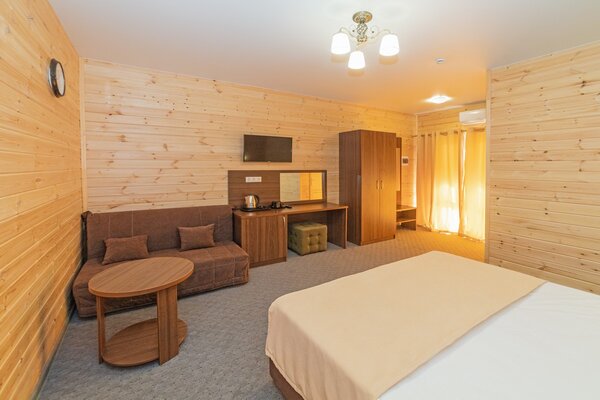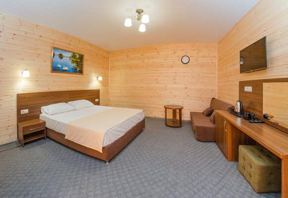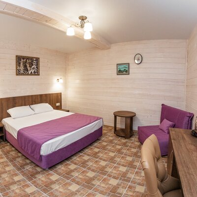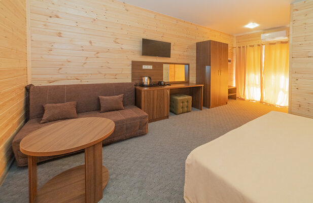С собаками и кошками до 7 килограммов, кроме номеров категории Комфорт, расположенных на втором этаже ЭКО-корпуса.
