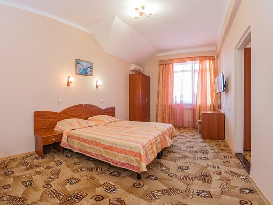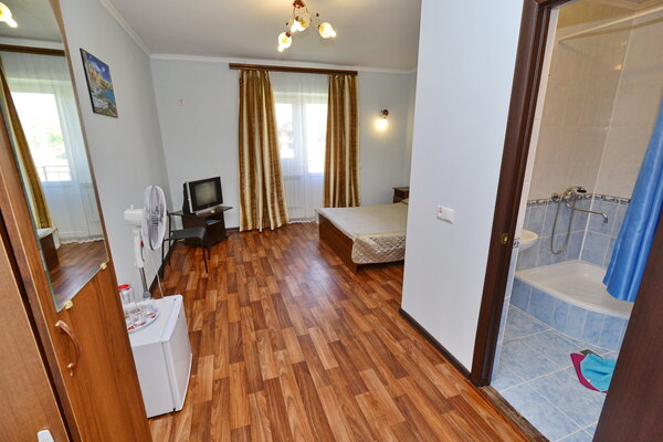 Поездом до ж/д вокзала г. Анапа, далее на маршрутном такси №100 до остановки «Дельфинарий», далее пройти пешком 230 м до отеля.