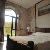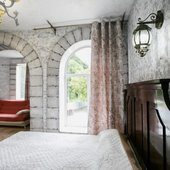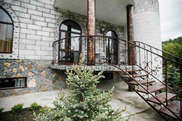 Была здесь в рамках тура выходного дня - эта гостиница идеальна для отдыха такого формата. Здание действительно стилизовано под небольшой замок - с бойницами, винтовыми лестницами и подземельем! Большая территория, много удобных для больших компаний беседок, аккуратные домики помимо основного здания, оборудованная общая кухня, красивые виды (идеально проводить свадьбы и фотосессии), можно устроить пикник у речки, есть возможность взобраться...