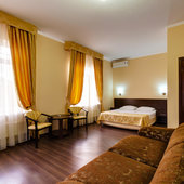«Отель Западный» – это современное и новое здание, расположенное всего в 1 км от центра Краснодара. Рядом находятся кинотеатр Аврора и выставочный комплекс «КраснодарЭкспо». Одним из главных плюсов отеля «Западный» является его месторасположение: четыре квартала (или 10 минут пешком) и вы на самой центральной улице Краснодара – улице Красной. Расстояние до автобусного вокзала составляет 1,5 км. Железнодорожный вокзал находится в 6,5 км, а аэропорт — в 12,5 км от отеля «Западный». Поездка до выставочного центра «КраснодарЭКСПО» занимает 10 минут. К услугам гостей отель предлагает 34 номера различных категорий.