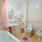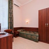 недостаточное оснащение номера (отсутствие фена, чайника, полок в ванной), медленное обслуживание в столовой, отвратительное телевещание.