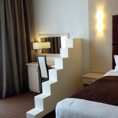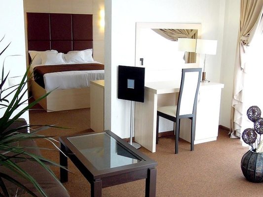 Номера класса «Студио» и «Люкс» разделены на спальную и гостиную зоны. Оформление в стиле «модерн», наличие первоклассной меблировки и всего, что нужно для респектабельного отдыха. Есть спутниковое телевидение, кондиционеры, холодильники и мини-бары, рабочий стол, телефон, балкон. На всей территории есть безлимитный WiFi.