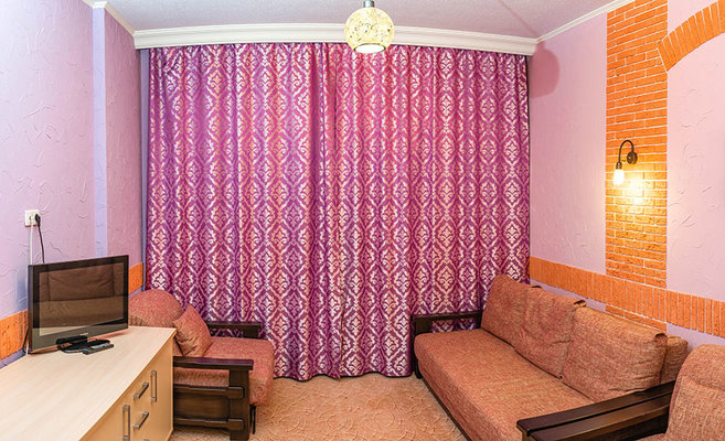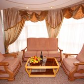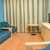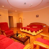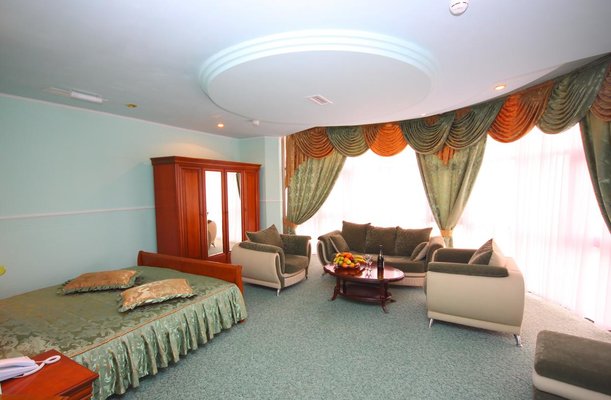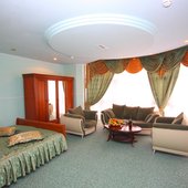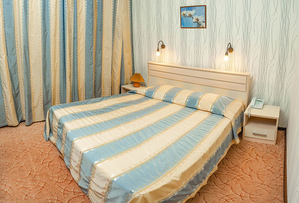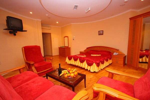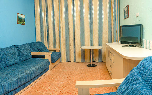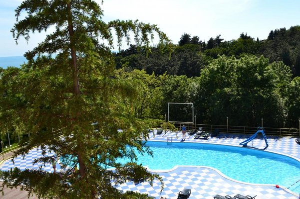 Здание санатория это единый 6–ти этажный комплекс оригинальной конструкции. В санатории 245 номеров, из них 217 номеров категории «Стандарт», 22 номера категории «Люкс», 2 номера категории «Полулюкс». Из всех номеров санатория открывается прекрасный вид на горы и море.