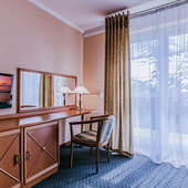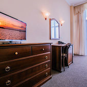 На территории комплекса построено три комфортабельных корпуса, коттеджи, бассейн с элементами аквапарка, медицинский комплекс, спортивная и детская площадки, оранжерея и небольшой зоопарк. У санатория собственная бесплатная парковка.