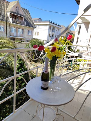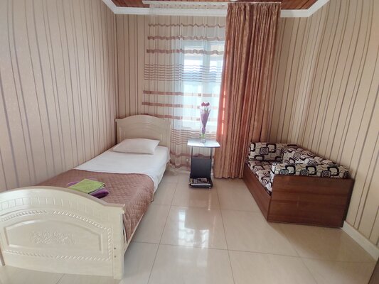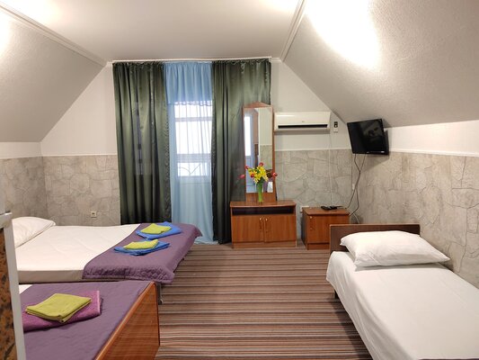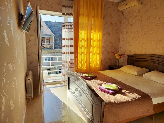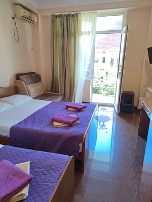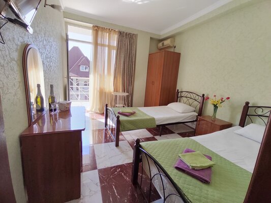 Гостевой дом состоит из двух четырехэтажных корпусов (без лифта). Мы предлагаем разнообразные номера: от двухместных до пятиместных, а также просторные двухкомнатные номера и апартаменты для семей до 5 человек. Каждый номер оборудован балконом, телевизором, кондиционером, холодильником, шкафом, вешалкой, журнальным и туалетным столиками, стульями. К услугам гостей индивидуальная ванная комната с душем, раковиной и туалетом.