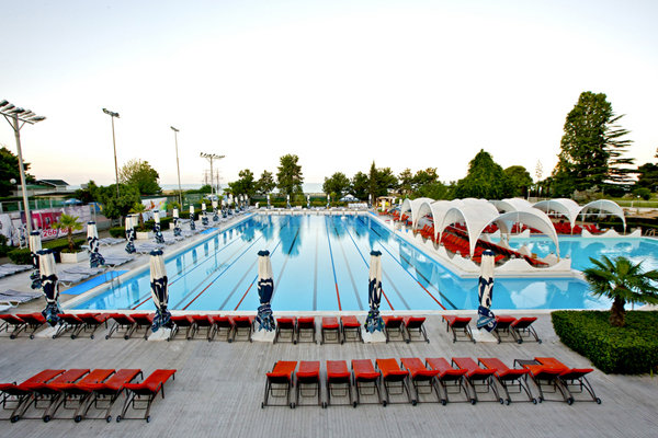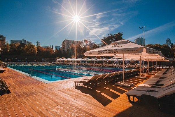 открытый — длина 50 м 8 дорожек, глубина - от 1.80 м до 4.70 м, вечерняя подсветка воды