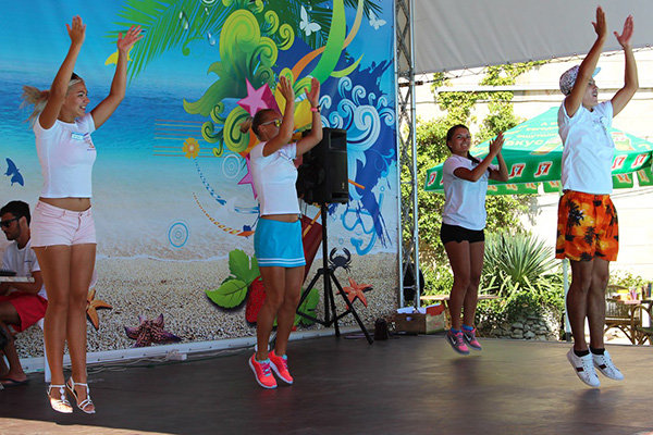 детский бассейн — 20х20 м, глубина от 0.8 м до 1.2 м с морской водой, подогреваемый