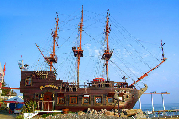 - от автостанции: до остановки «Театральная» 10 минут - автобусом №№ 1, 3, 19, 22, 23, 100, 125 и мн.др., маршрутным такси - №№ 3, 19, 37, 83, 23, 41, 43, 90, 95 и мн.др.; далее пешком в сторону моря 6-10 мин.