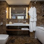 Бани и сауны — 2 сауны (СПА-баня), одна у бассейна отеля, одна в корпусе без бассейна, банный комплекс за отд. плату и по заказу