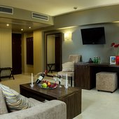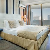 Отель включает в себя 887 обновлённых комфортабельных номеров с балконами и видом на море, из которых 124 номера высшей категории, оборудованный пляж и водные аттракционы, круглогодичный бассейн с подогреваемой морской водой.