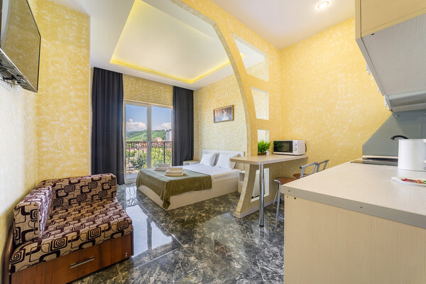 Апартаменты «Deluxe Apartments Sochi» находятся в районе Адлер и оборудованы всем необходимым для комфортного проживания. В апартаментах имеется вся бытовая техника: плита, кондиционер, посуда, холодильник, утюг, гладильная доска, стиральная машина, фен, высокоскоростной Wi-Fi и телевидение.