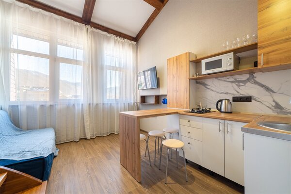 Расслабьтесь и насладитесь комфортом в наших просторных апартаментах, расположенных в живописном районе курорта Горки Город (Красная Поляна).