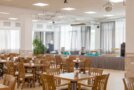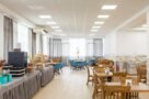 Обеденный зал находится в отдельно стоящем здании, расположенным между 1 и 2 жилыми корпусами. Гостям Санатория предлагается трехразовое питание по системе «Шведский стол» с разнообразным и сбалансированным меню. При необходимости гости санатория могут получить консультацию диет. сестры.