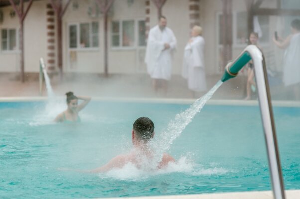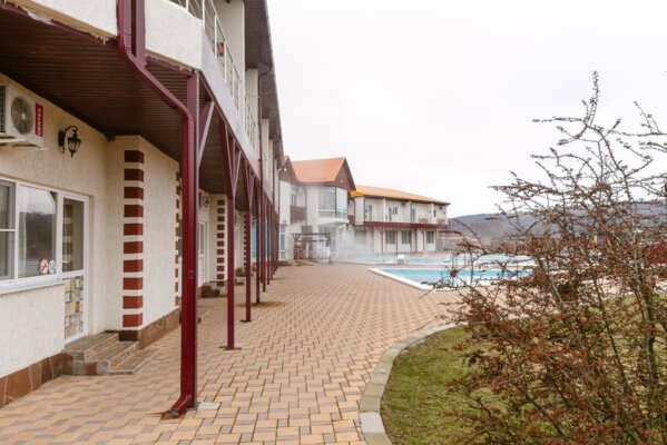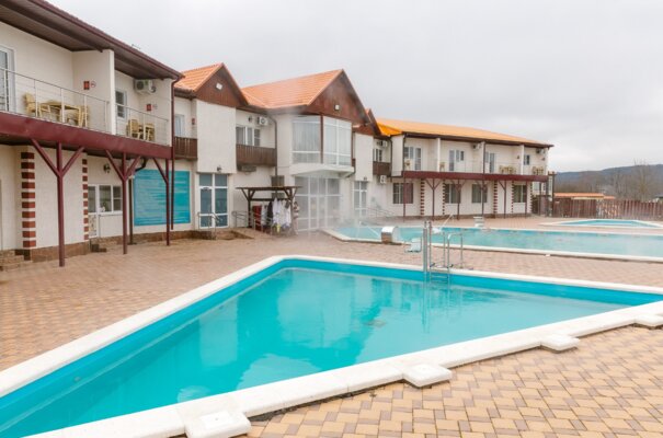 К услугам гостей: три бассейна с горячей термальной водой, комфортабельные номера различных категорий, ресторан, бар, беседки с отоплением (идеально для семейного и корпоративного отдыха), детская площадка, уютная парковая зона и бесплатная парковка. Отдохните в чистых и уютных номерах после насыщенного дня, наслаждаясь красотой окружающих ландшафтов.