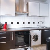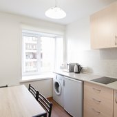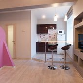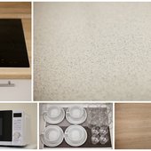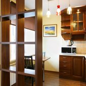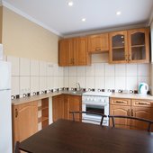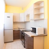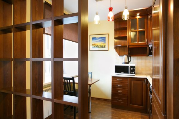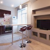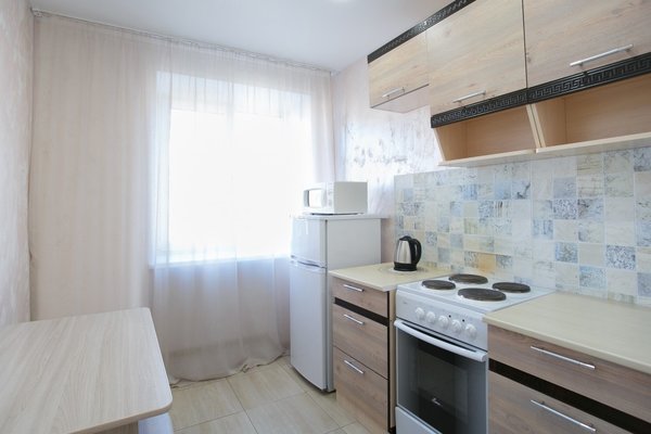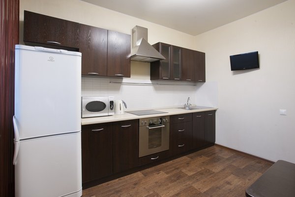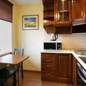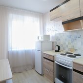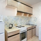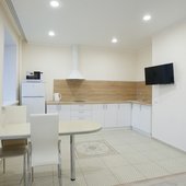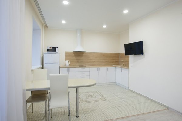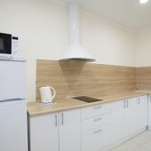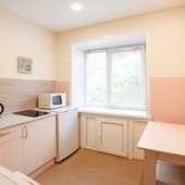 Каждому гостю доступна индивидуальная кухня с гарнитуром и обеденным столом.