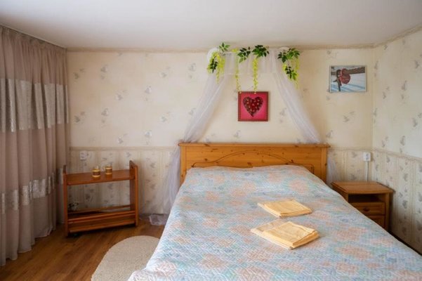 Размещение предлагается в двух-, трех, четырехместных номерах с удобствами или в домиках на два номера с общей террасой. Все комнаты оснащены удобными кроватями, шкафами и тумбочками, везде есть санузел. На территории есть стоянка для автомобилей, беседки для пикника с мангалами, ресторан, террасы, в затоне – причал для лодок.